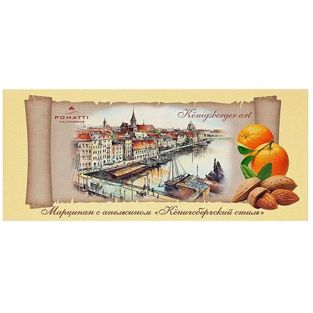 Состав: Марципан: миндаль 44%,сахар, вода, инвертный сахарный сироп, влагоудерживающий агент: сироп сорбита, апельсиновая корочка, ароматизатор натуральный «Куантро».