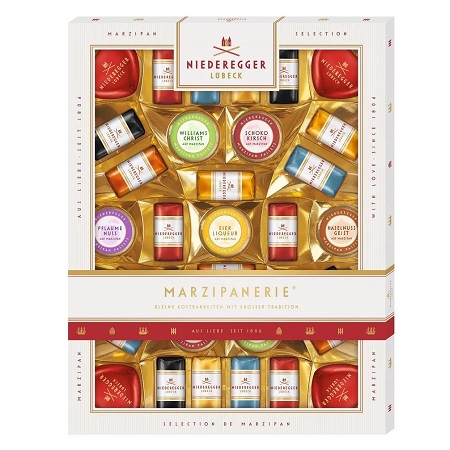 Состав: МИНДАЛЬ 38%, темный шоколад 28% (какао-масса, сахар, какао-масло, цельное сухое молоко, эмульгатор: СОЕВЫЙ ЛЕЦИТИН, экстракт ванили), сахар, инвертный сахарный сироп, алкоголь, ананас, глюкозно-фруктозный сироп, апельсиновая цедра, сливы, фруктовый порошок сливы (сливы, мальтодекстрин), порошок апельсиновых фруктов (мальтодекстрин, апельсины, натуральный ароматизатор), растворимый кофе, апельсиновый ликер, арманьяк, яблоко, фруктовый порошок ананаса (ананас, мальтодекстрин), яблочный сок из концентрированного фруктового сока, натуральный ароматизатор ананас , Натуральные ароматизаторы, кислота (лимон-, L(+)-винная кислота), натуральный апельсиновый ароматизатор, ароматизатор, желирующие агенты (пектин, альгинат натрия), стабилизатор: пектин, соевая мука, апельсиновое масло, специи. Содержит следующие аллергены: орехи, молоко и соя.